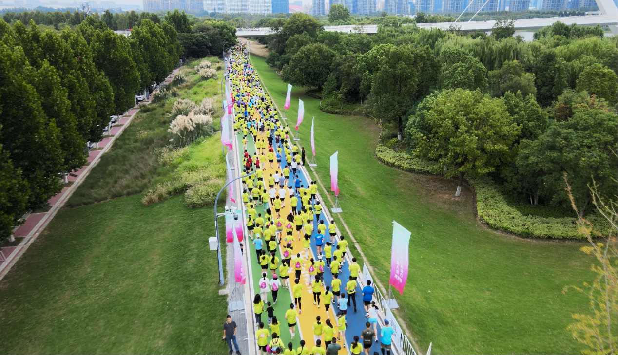 南京站设10公里和5公里两个项目,赛道沿中新南京生态科技岛环岛智慧跑道而设,选手们不仅可以饱览生态科技岛的旖旎风光,还能感受现代化生态科技、自然美景与全运氛围的完美融合,形成一条色彩绚丽的流动“长河”。比赛期间,许多晨练的市民自发来到赛道两侧为选手们加油呐喊,此起彼伏的助威声营造出热烈气氛。