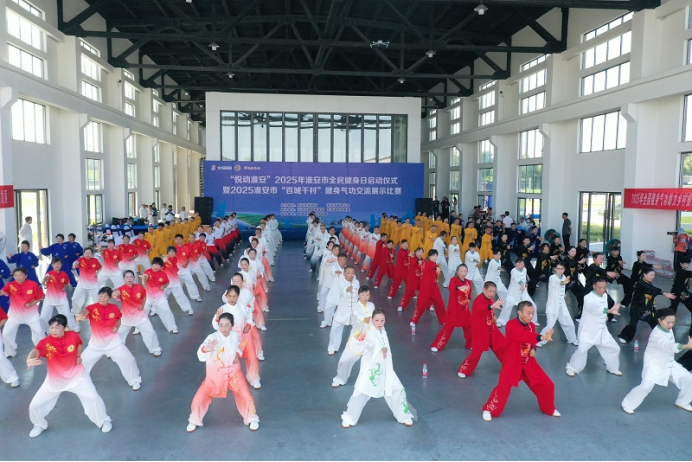 8月5日,2025年淮安市全民健身日启动仪式暨“百城千村”健身气功交流展示比赛在洪泽区船厂记忆落下帷幕。此次活动由淮安市体育局、体育总会主办,洪泽区教育体育局承办,全市8个县区17支代表队170名运动员齐聚洪泽共同庆祝第17个全国全民健身日。