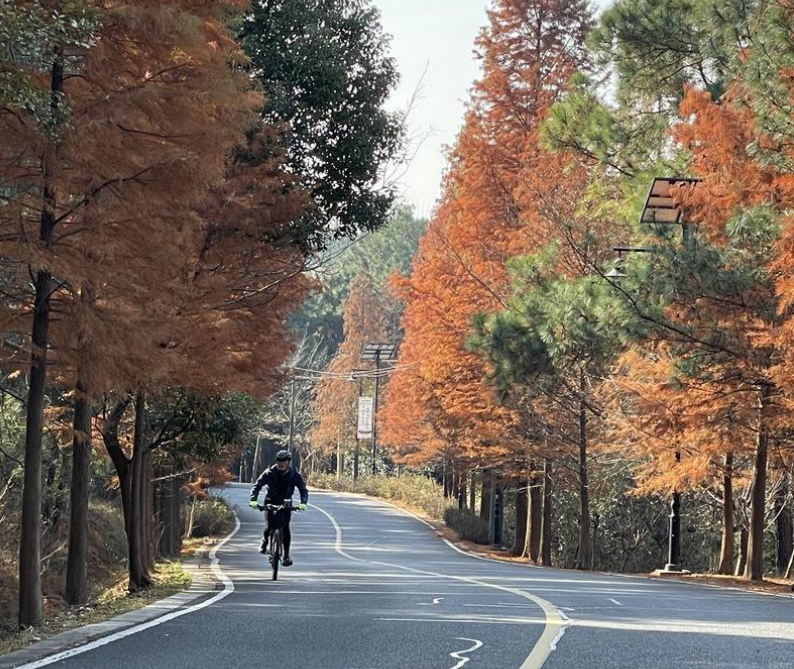 南京无想山环山湖绿道全长约35公里,从遇园徽派建筑群出发,经洞壁琴音景区、王家店水库、无想禅寺至傅家边草莓园。线路以山地绿道为主,沿途竹海连绵,秋季可采摘山莓。洞壁琴音至凉篷下段为“南京最美骑行赛道”,坡度平缓,适合家庭骑行。沿线配套设施齐备,中途老虎山驿站提供修车工具、简餐;终点遇园徽派建筑群旁有充电桩;绿道全程覆盖5G信号,设智能导览屏。