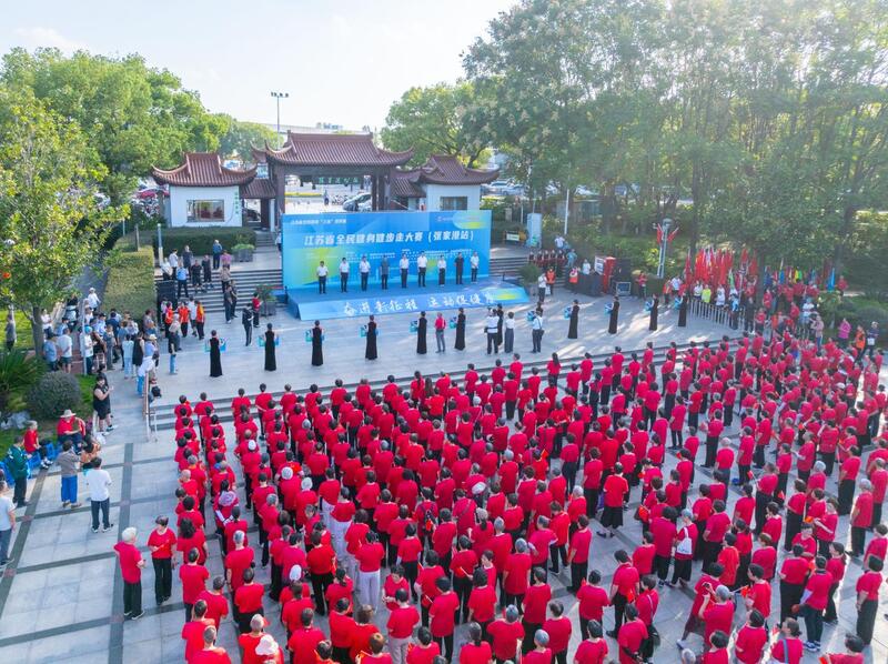 本次赛事活动由江苏省体育局、江苏省体育总会主办,中国江苏网、张家港市文体广电和旅游局、张家港市体育总会、张家港市文商旅集团、张家港市老年体育大学承办,来自张家港市广场健身舞协会、健身气功协会、空竹运动协会等11支队伍的选手们,漫步在园区健身步道,精神抖擞、步伐矫健,展现了全民健身的蓬勃活力。