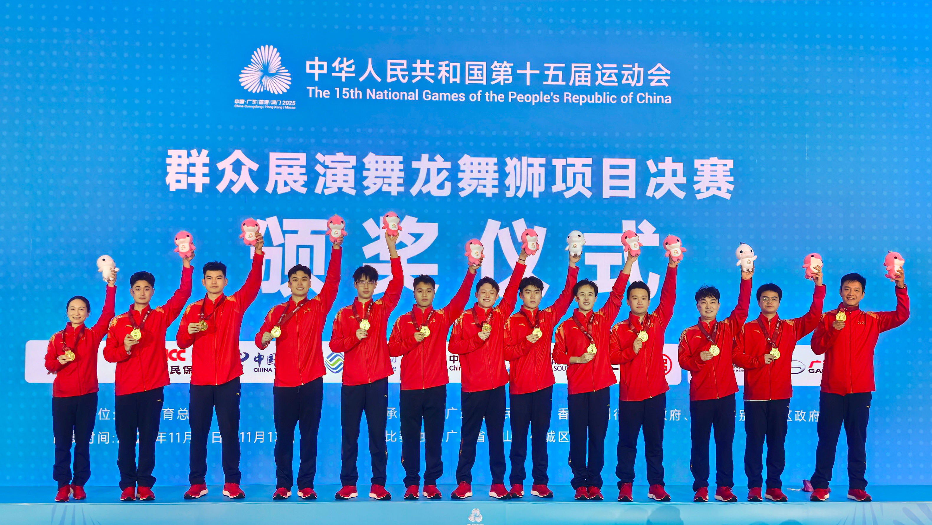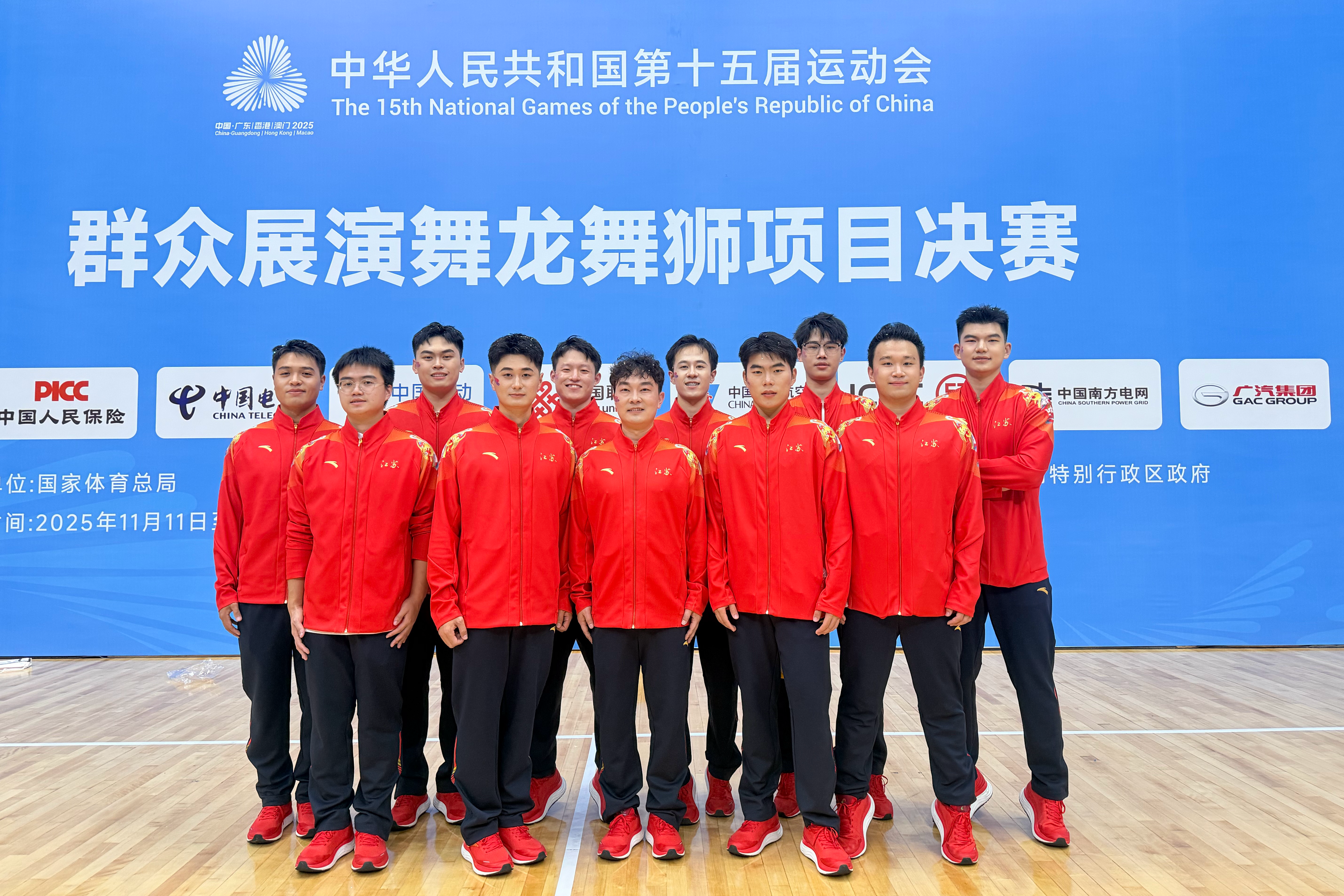 本届全运会群众展演舞龙舞狮项目共设8个子项目,包括南狮自选、南狮障碍、南狮传统、舞龙障碍、北狮自选、舞龙规定、舞龙自选、彩带龙自选等。据江苏队教练甘从婷介绍,“我们这支队伍是名副其实的‘多元组合’。”甘丛婷介绍,队伍核心成员多来自南京理工大学体育部研究生,因户籍需求补充了南京科技职业学院的学生,更有两位特殊的“老将”,已工作多年、第三次征战全运会的龙珠和龙尾队员。“他们既是经验丰富的老队员,也是老师级别的骨干,一头一尾的稳定发挥,为队伍夺冠奠定了坚实基础。”