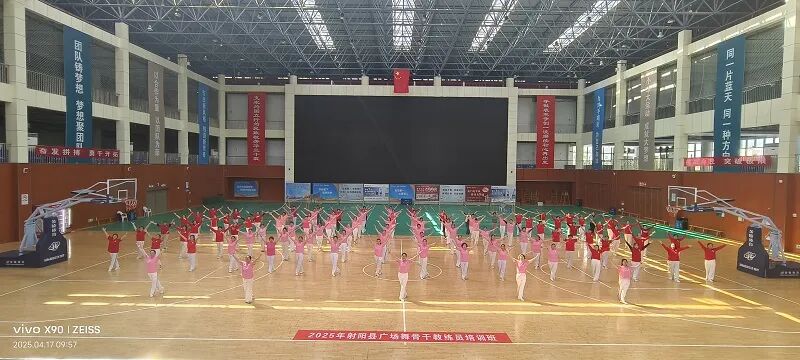 4月16日-17日,由射阳县体育局、射阳县体育总会主办,射阳县广场舞协会承办的2025年全县广场舞骨干教练员培训班在全民健身中心综合馆举行。来自全县城乡223名站点负责人、健身骨干、教练员参加培训。