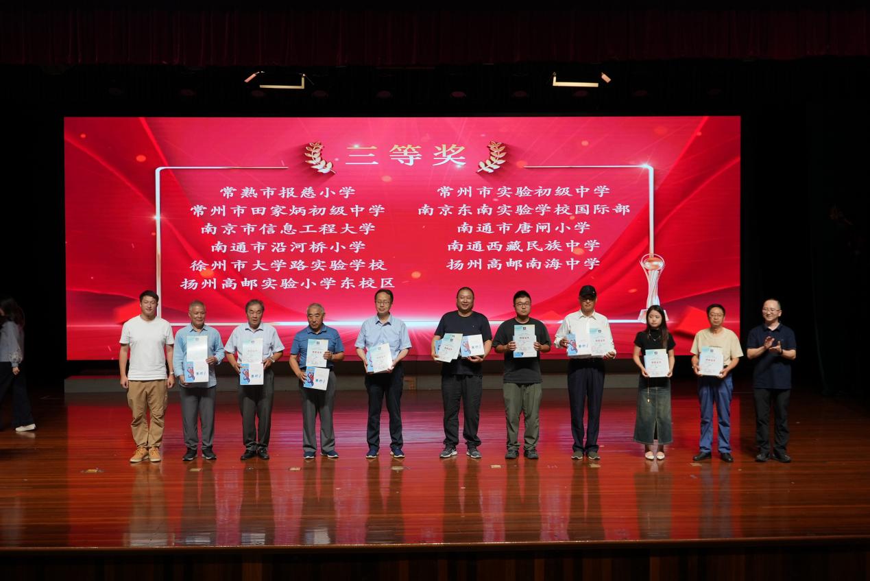 经过专家评审,本次“方寸世界·青春华章”青少年一页体育邮集大赛共评选出一等奖8部、二等奖16部、三等奖32部以及鼓励奖56部。获一等奖的学校有常州市觅渡桥小学、常州市实验初级中学、南京市白下高新小学、南通市沿河桥小学、南通市西藏民族中学、常熟市报慈小学。史国生、陆春龙为一等奖获奖代表颁奖,李明华等依次为其他奖项的获奖代表颁奖。