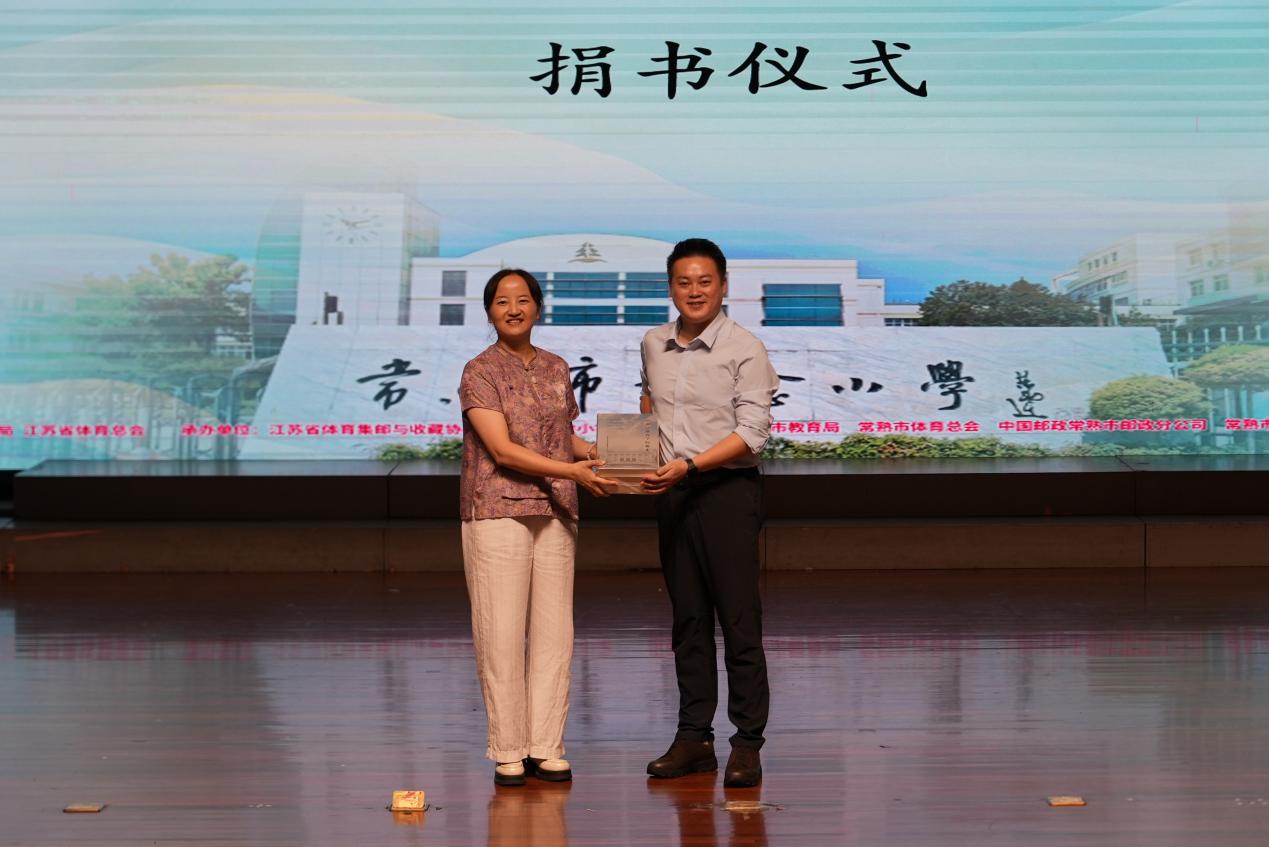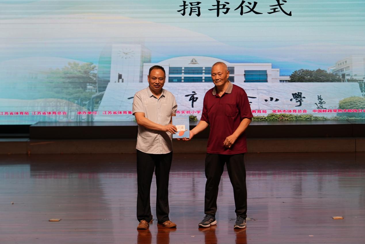 颁奖典礼上,奥运冠军陆春龙向常熟市实验小学赠送了毛泽东著《体育之研究》《江苏体育记忆》《南京体育学院校史1956-2021》《南京体育学院奥运冠军录》等书籍。常熟资深体育集邮者汤淦贤向常熟市实验小学赠送《中国乒乓球专题邮品目录》书籍。