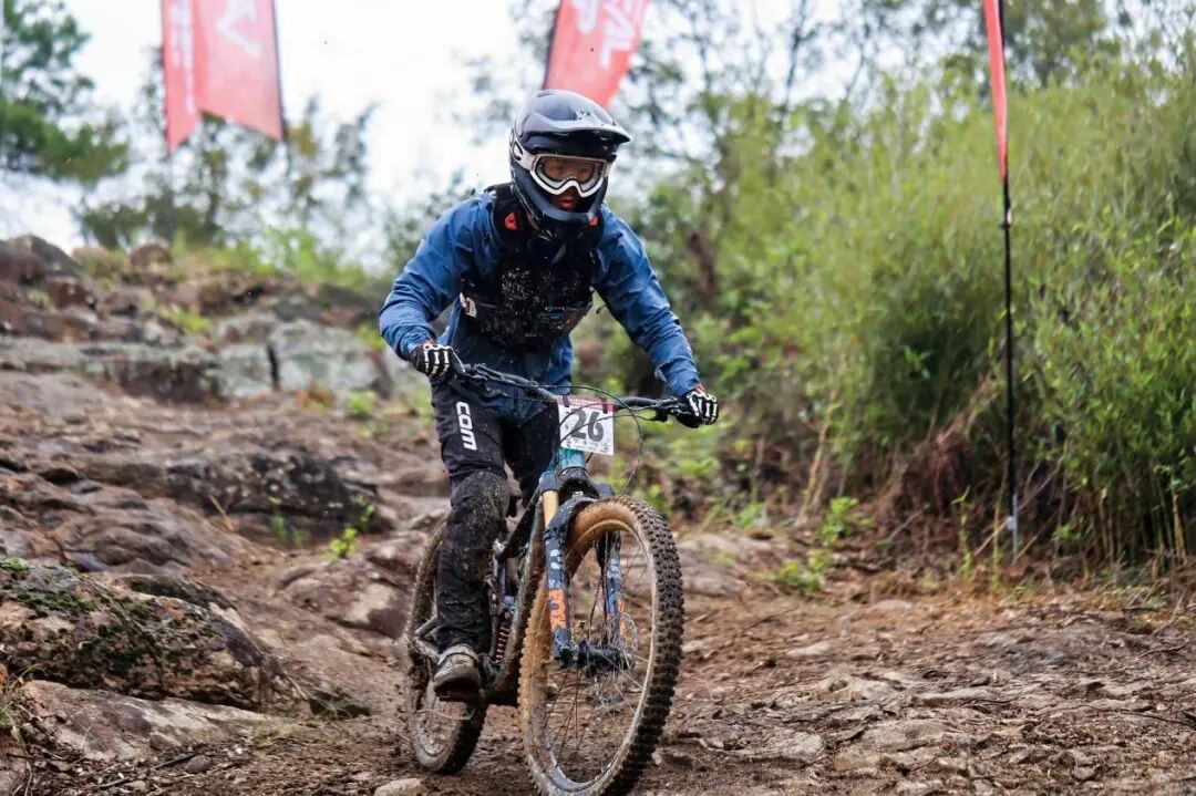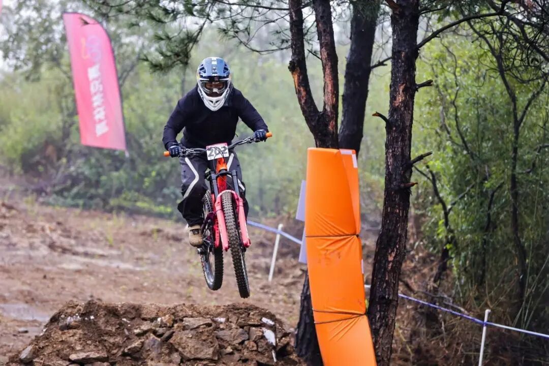 此次比赛赛道全长1.1公里,平均宽度约两米,整条赛道技术点较多,经过丛林路段,沿途设置有多处急弯,高速下坡,乱石阵路线,对选手的综合能力要求较高,选手们飞驰其间,既能感受速度与技巧的碰撞,又能饱览翠绿林海与山水相映的绝美风光,实现竞技性与观赏性的双重突破。
