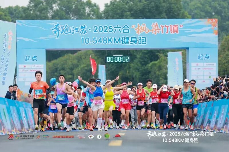 10月26日上午,“奔跑江苏・2025六合‘枫染竹镇’10.548KM健身跑”在南京市六合区竹镇大泉湖景区热烈启幕。950名跑者从环湖路广场出发,迎着秋阳,在湖光山色中尽情奔跑,在秋日盛景中挥洒汗水,用脚步丈量“生态竹镇”的独特魅力。