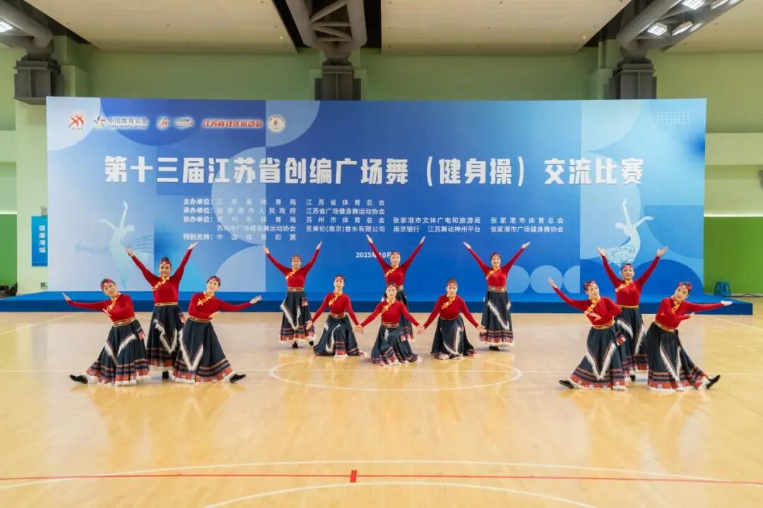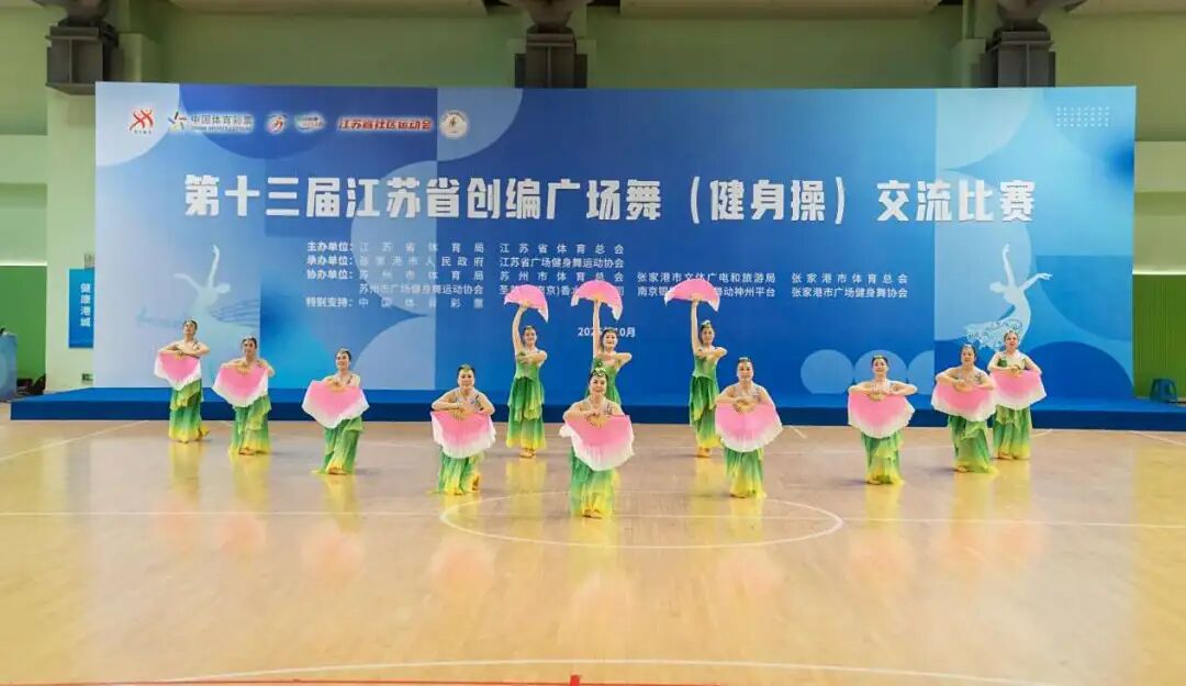 10月29日,第十三届江苏省创编广场舞(健身操)交流比赛在苏州张家港市职工文体活动中心举办,来自全省各地的300名广场舞参赛人员齐聚一堂。本次比赛由省体育局、省体育总会主办,张家港市人民政府、省广场健身舞运动协会承办,中国体育彩票提供公益支持。
