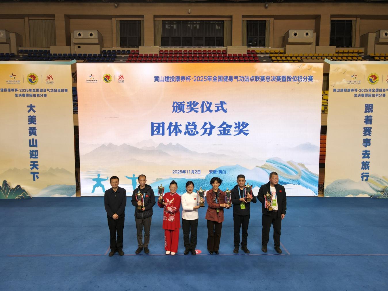 11月2日,2025年全国健身气功站点联赛总决赛暨段位积分赛在安徽黄山休宁县体育馆落幕。江苏根据全国健身气功站点联赛(江苏省分站赛)的总分排名,选派无锡市、徐州市、盐城市、扬州市4支站点代表队29人参赛。