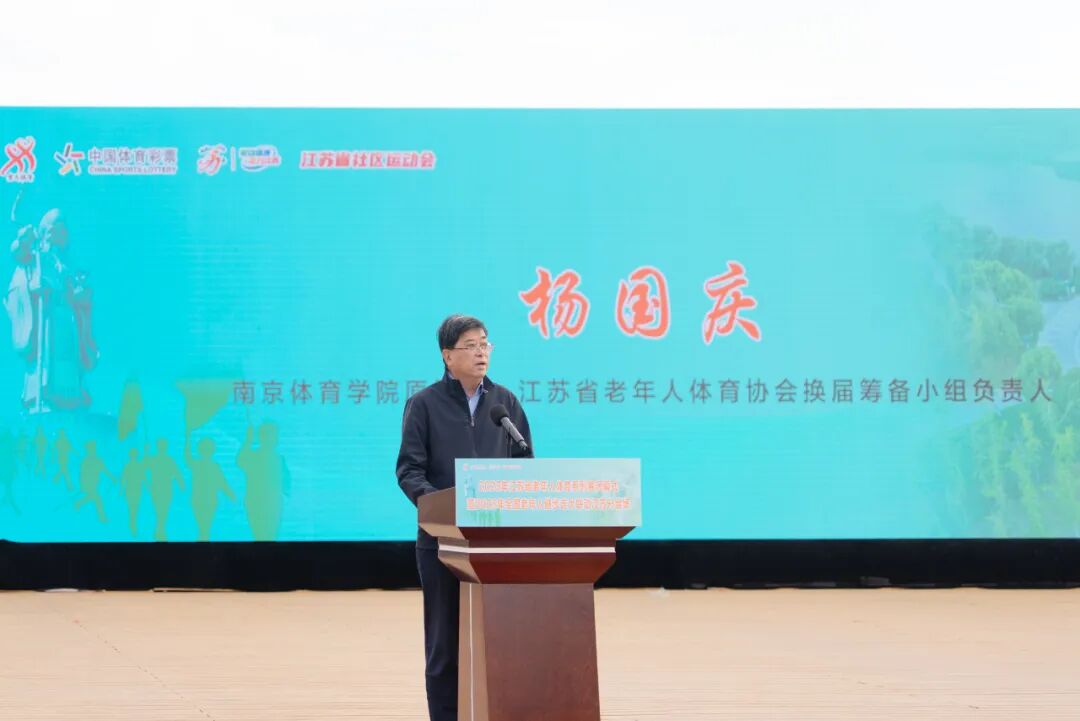 南京体育学院原院长、江苏省老年人体育协会换届筹备小组负责人杨国庆在讲话中表示,老年体育工作是体育事业和老龄事业的重要组成部分,省委、省政府高度重视,将其纳入构建更高水平的全民健身公共服务体系的重点内容。近年来,全省持续优化城市社区“10分钟体育健身圈”,新建改建健身场地与步道,开展健身讲座,培育社会体育指导员队伍,为广大老年人提供便捷、专业、安全的健身服务。希望以此次活动为契机,带动更多老年朋友选择一项活动,加入一个团队,享受一种快乐,收获一份健康,让全民健身在银发群体中结出更丰硕的成果,共同践行“我运动、我健康、我快乐”的生活理念,感受运动之乐与生态之美。