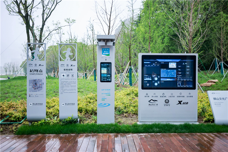 狮山文化广场数字跑道是经过中国田协认证的“苏州城区首条数字跑道”,融合“数字经济+共享经济”,运用物联网技术及信息科学技术,融入路径资源与文旅资源,通过App或小程序实现身份信息采集,采用智能化硬件架构和对应大数据平台,配备景观体育赛事固定设施。如:起终点配套设施、医疗点、途中补给点、成绩采集、大数据平台,搭建一个可供不同客户群体按需自助、随时使用的共享数字化赛道,以实现景观体育赛道的信息化、智能化、数字化。